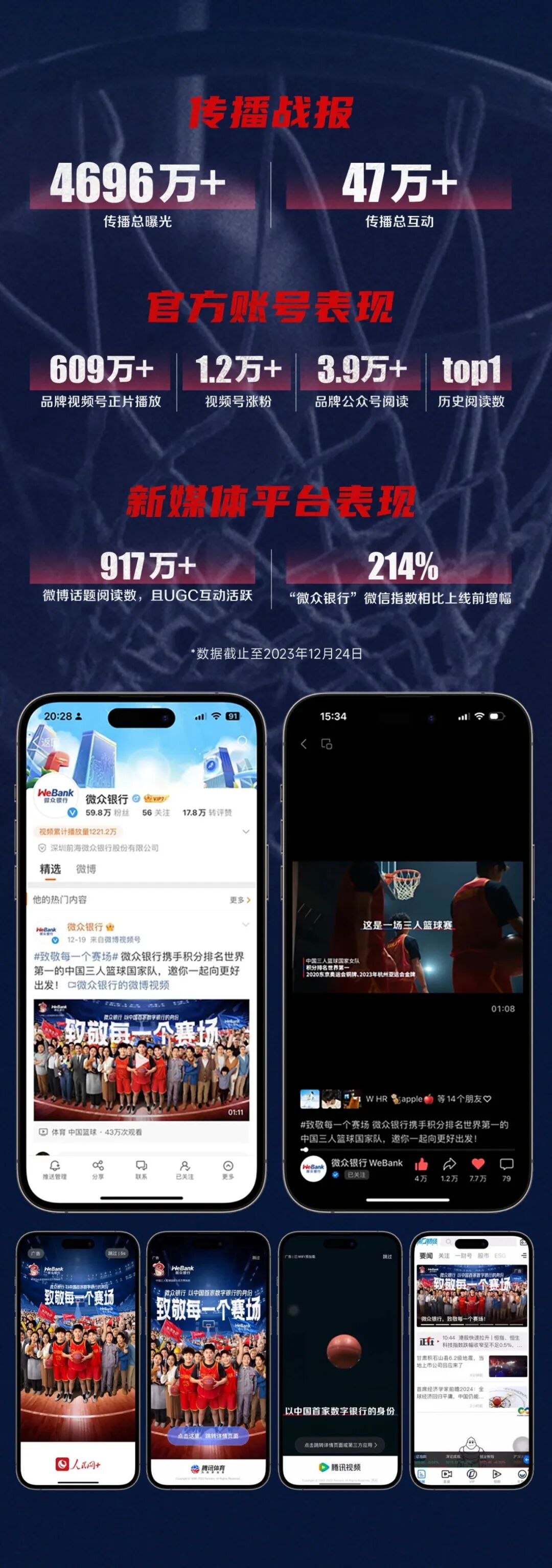 微眾銀行新媒體矩陣官宣,以普世助強的內容營銷點燃年末體育IP營銷第一把火,並獲得了中國三人籃球國家隊轉發。