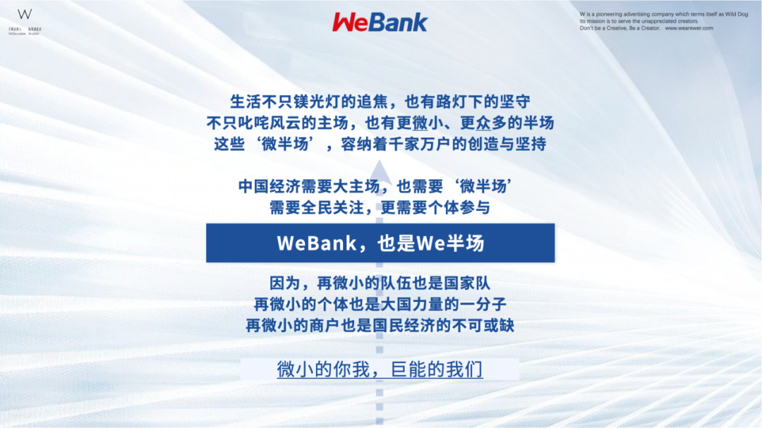 由此,生活的无数半场,都可以成为我们「微半场」的讲述场景,真正让微众银行「微半场」代表千家万户。