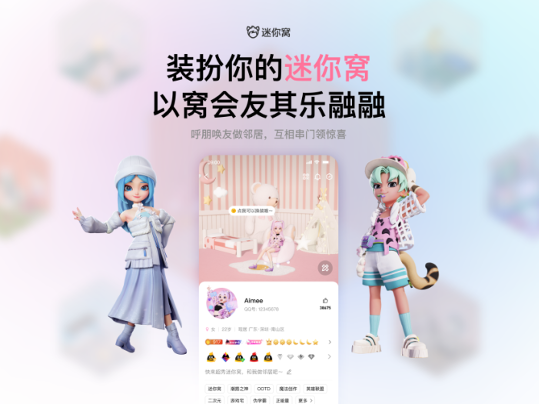 可以為自己打造專屬3D立體迷你窩,用戶可以快速編輯自己的專屬迷你窩展示到資料卡頂部,也可以去好友小窩串門抽取禮物,虛擬形象逐步融入到 QQ 的社交場景中。